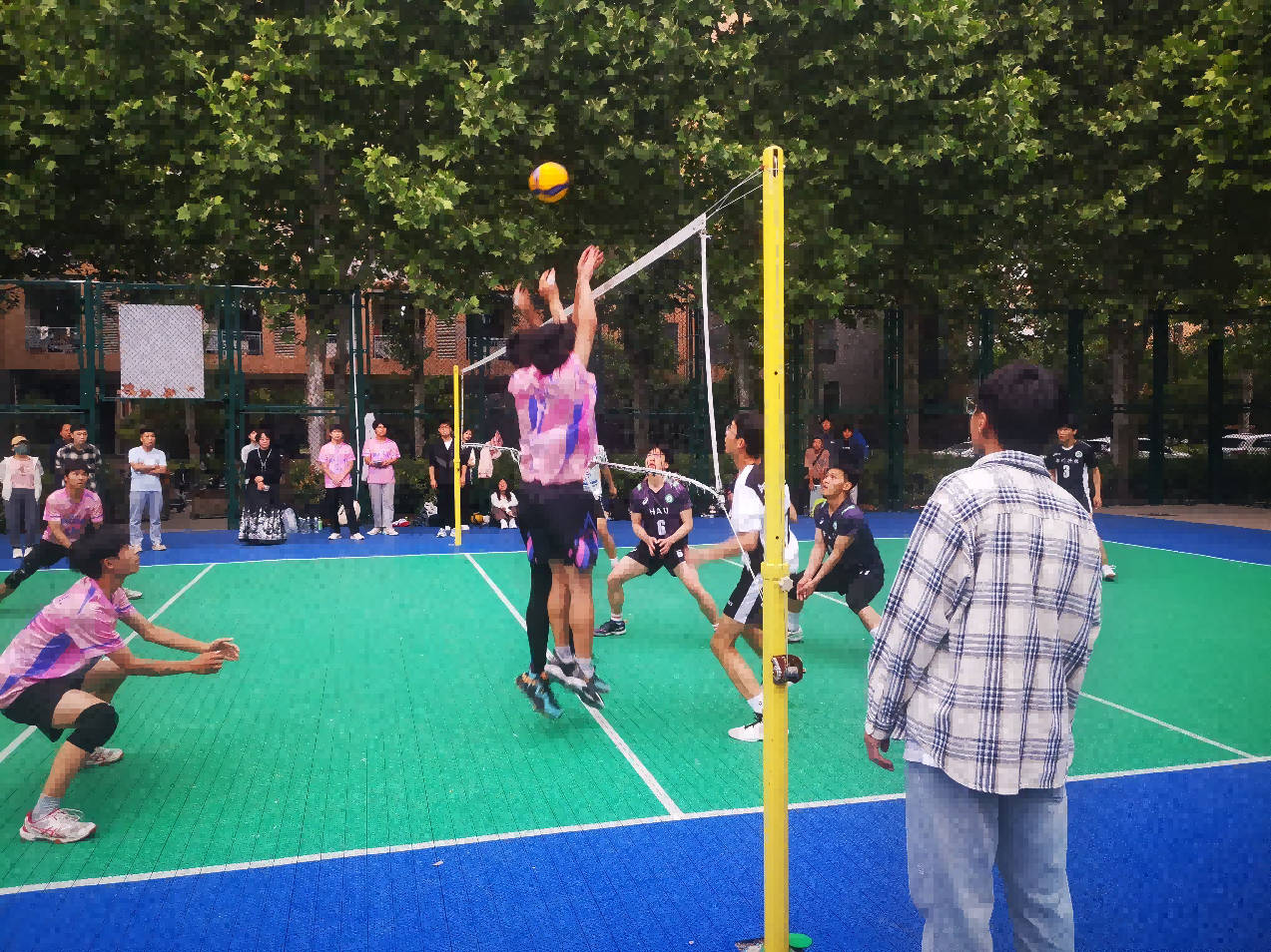 5月7日下午四点,紧张激烈的决赛在室内排球场打响。