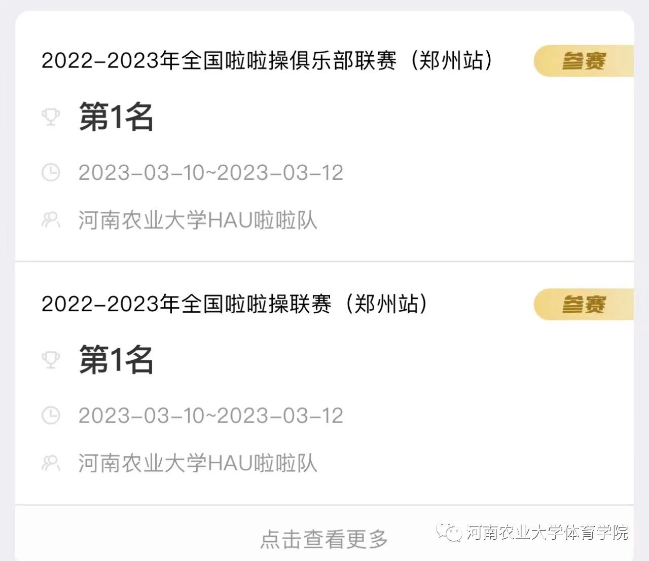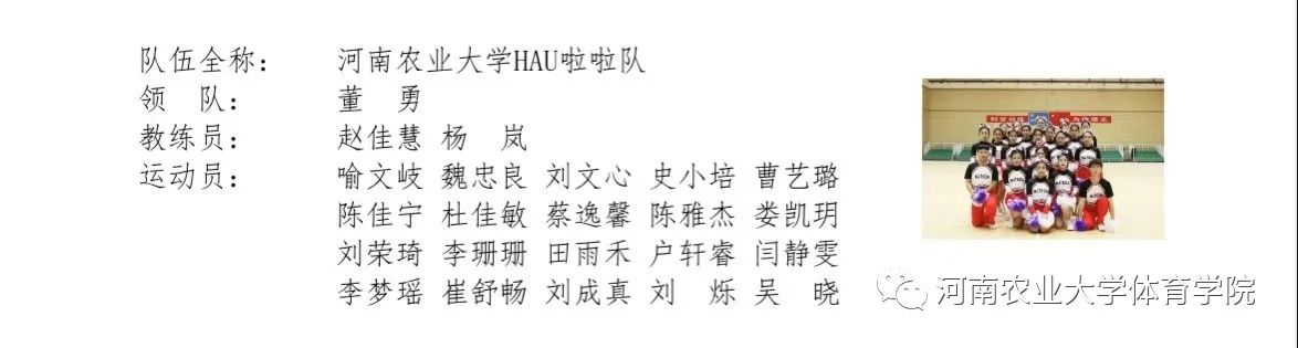院长董勇带队,杨岚、赵佳慧两位老师指导,20名舞蹈表演和社会体育指导与管理专业同学组成。在此次比赛中我校代表队连续斩获2022-2023年全国啦啦操联赛(郑州站)和2022-2023全国啦啦操俱乐部联赛(郑州站)两项赛事第一名!