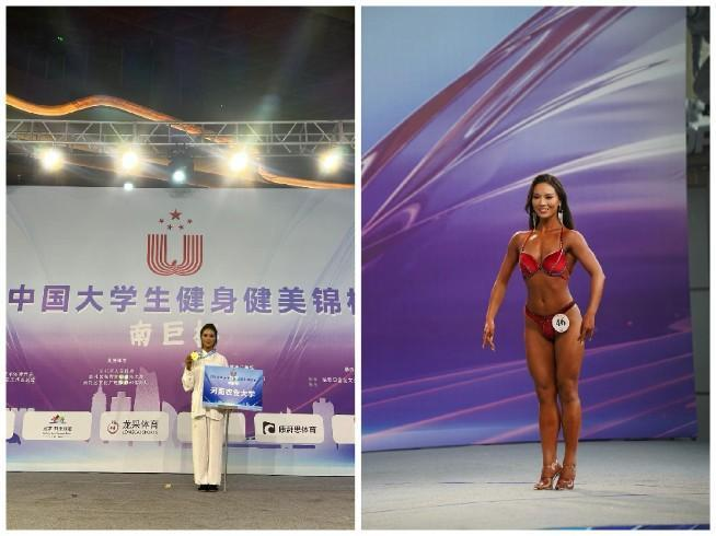 派出的唯一一名运动员,崔贞淼同学在赛前经历了孤独、无助和焦虑,在教练的鼓励和指导下,克服了心理上的障碍,严格控制自己的饮食摄入,精准训练,走上舞台后斗志昂扬,自信满满,经过多轮较量和激烈比拼,最终获得本科组女子健身项目的金牌。