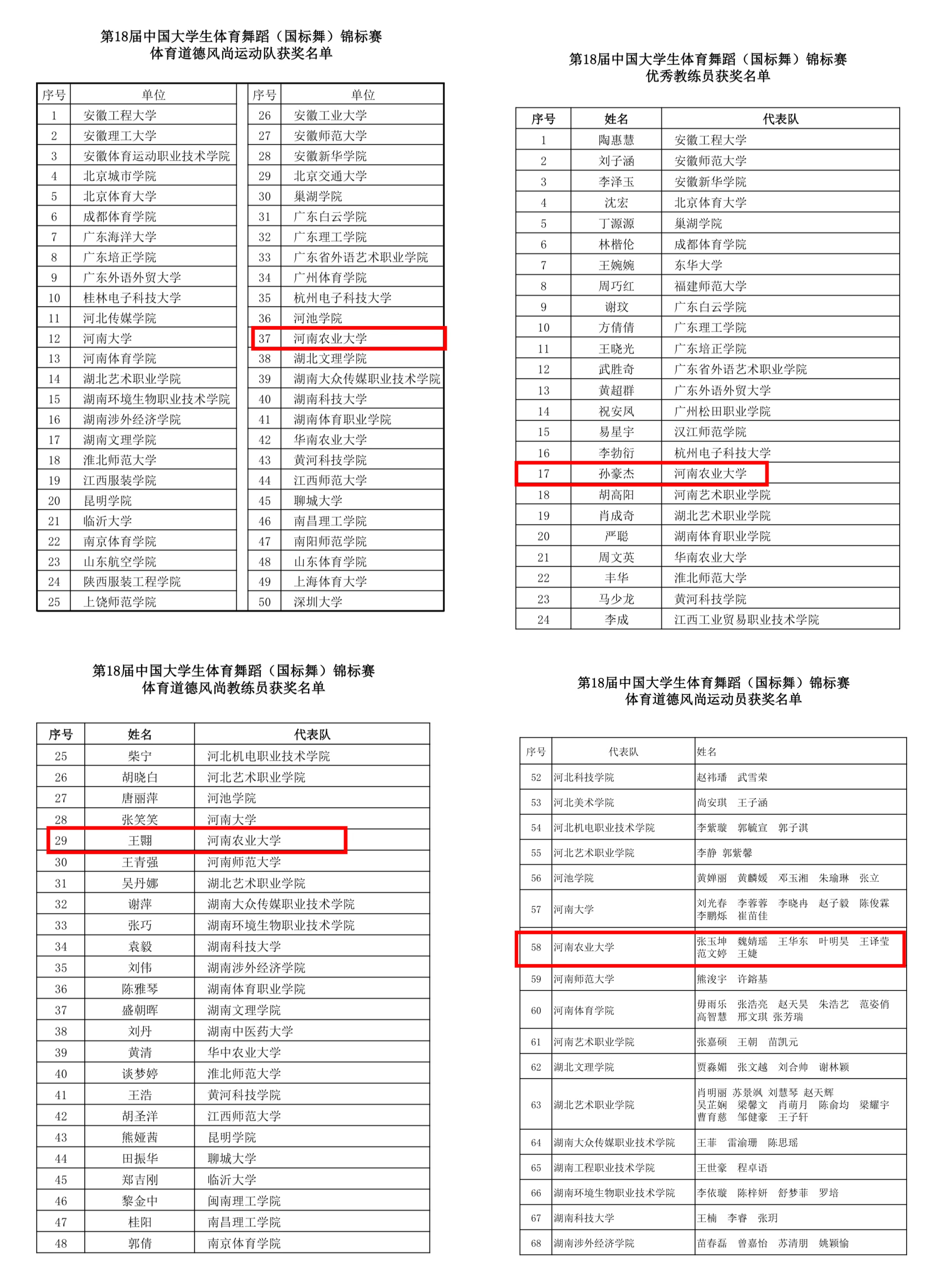 舞蹈表演专业共20人参赛,分别荣获4项冠军、1项季军、1项第四名、2项第五名、1项第六名、2项第八名的优异成绩,团体总分成绩在河南省公办高等院校中卫冕成功,再斩第一名佳绩,并荣获体育道德风尚奖。其中,孙豪杰老师被评为优秀教练员,王翾老师被评为体育道德风尚教练员,魏婧瑶、王华东、张玉坤、叶明昊、王译莹、王婕、范文婷被评为体育道德风尚运动员。