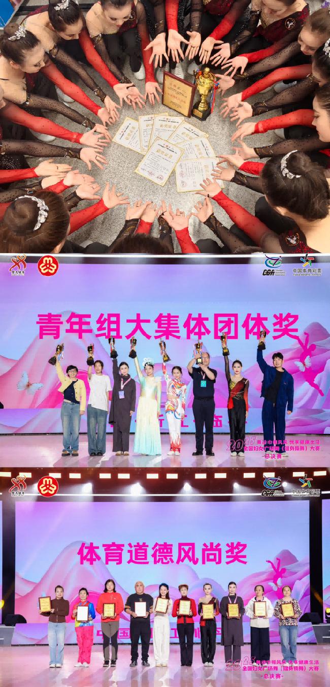 戴雨露老师、赵佳慧老师担任教练,16名学生凭借出色的发挥与优异的表现,在强手如林的全国赛场中脱颖而出,共摘得青年组大集体自选项目特等奖、规定项目三等奖、青年组大集体团体奖以及体育道德风尚奖,展现了河南农大学子的卓越风采与巾帼力量!