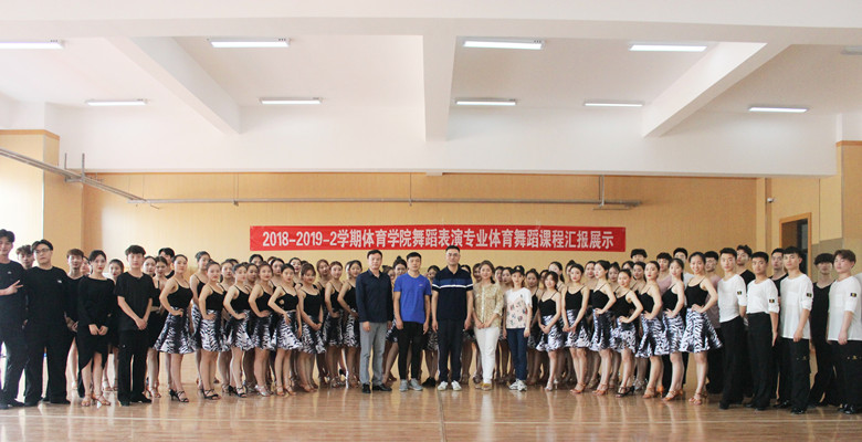 展示结束时,唐大鹏副院长、王献斐主任和体育舞蹈课程组老师一起与全体汇演学生合影留念。