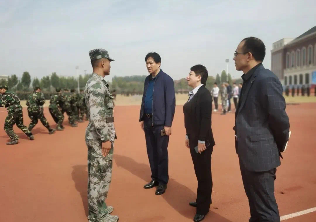 各军训方阵。在查看新生军训工作进展情况后,对参训新生表达了深深的关切之情,并对承训教官们的辛勤付出表示衷心的感谢和诚挚的敬意。