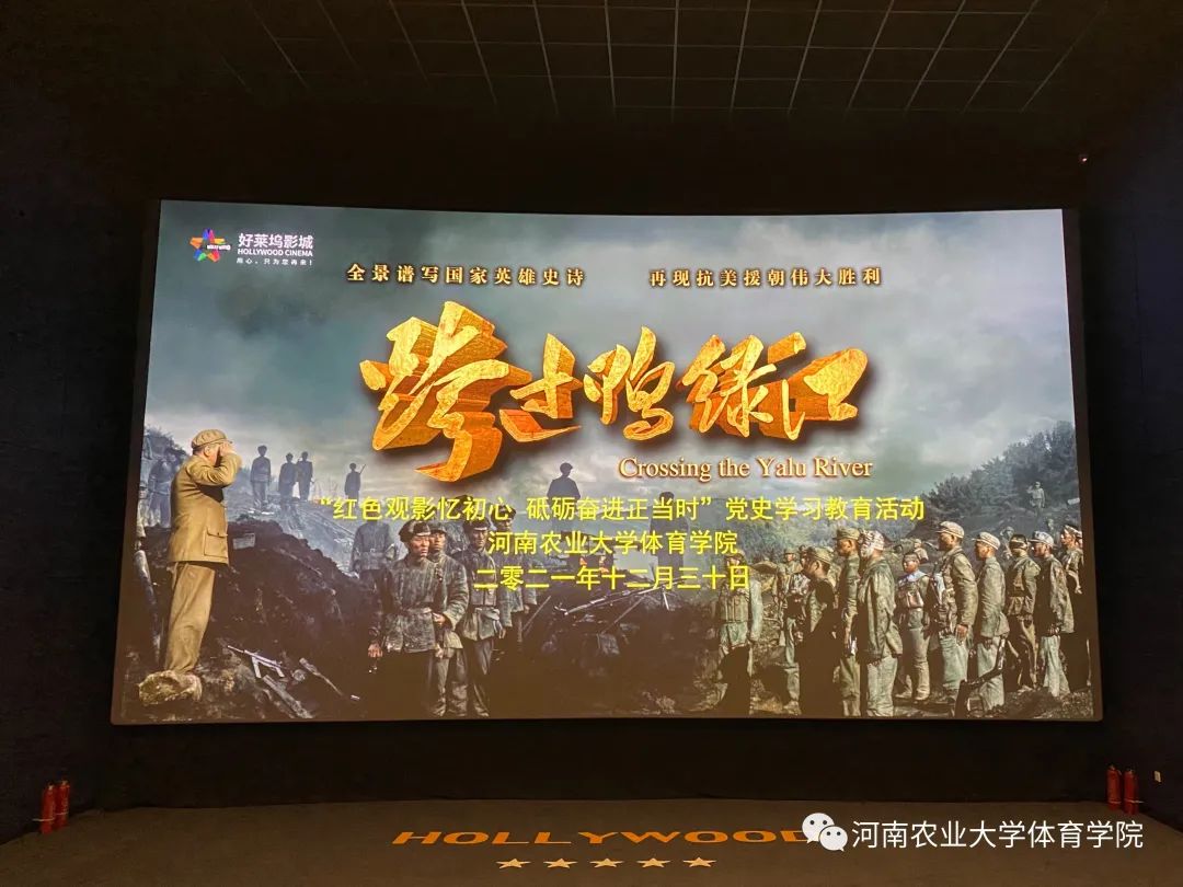 组织部分师生党员以主题党日活动形式,在好莱坞影城集中观看电影《跨过鸭绿江》,通过电影银幕共同回顾了那场艰苦卓绝、震撼人心的抗美援朝战争。.