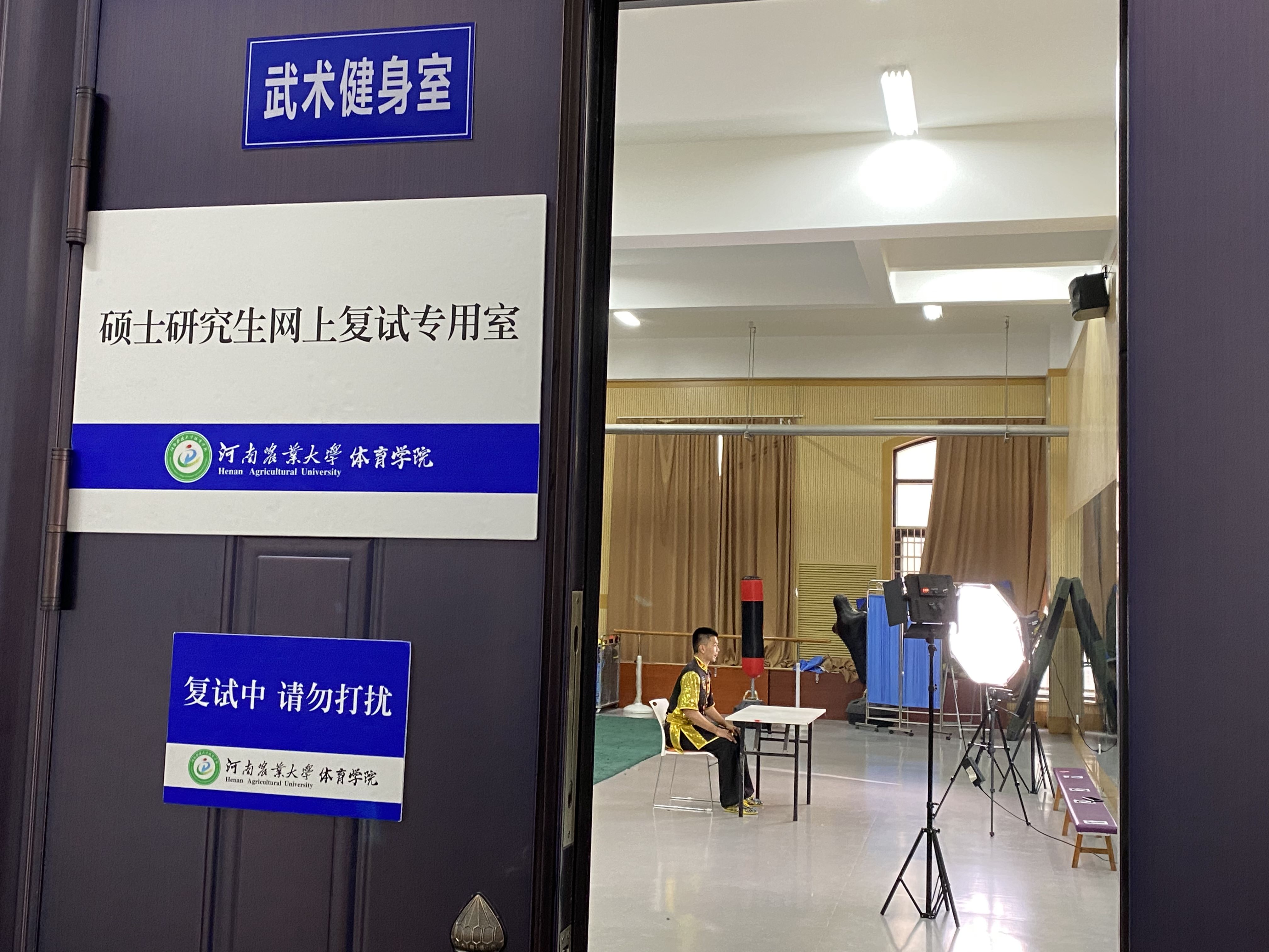 为充分满足考研学生参加网上复试的硬件需求,学院在考研复试专用室里配置了所必备桌椅、三脚架、补光灯、高清摄影机和无线Wi-Fi,并为同学们做好后勤保障,给参加线上复试的学生“保驾护航”。邀请专业课教师、学业导师为考研学生提供跟踪指导,帮助考生强化专业课基础和能力,帮助学生在复试时展现高水平专业基础。组织开展线上模拟复试训练,帮助学生熟悉网络复试流程,确保复试过程顺利。