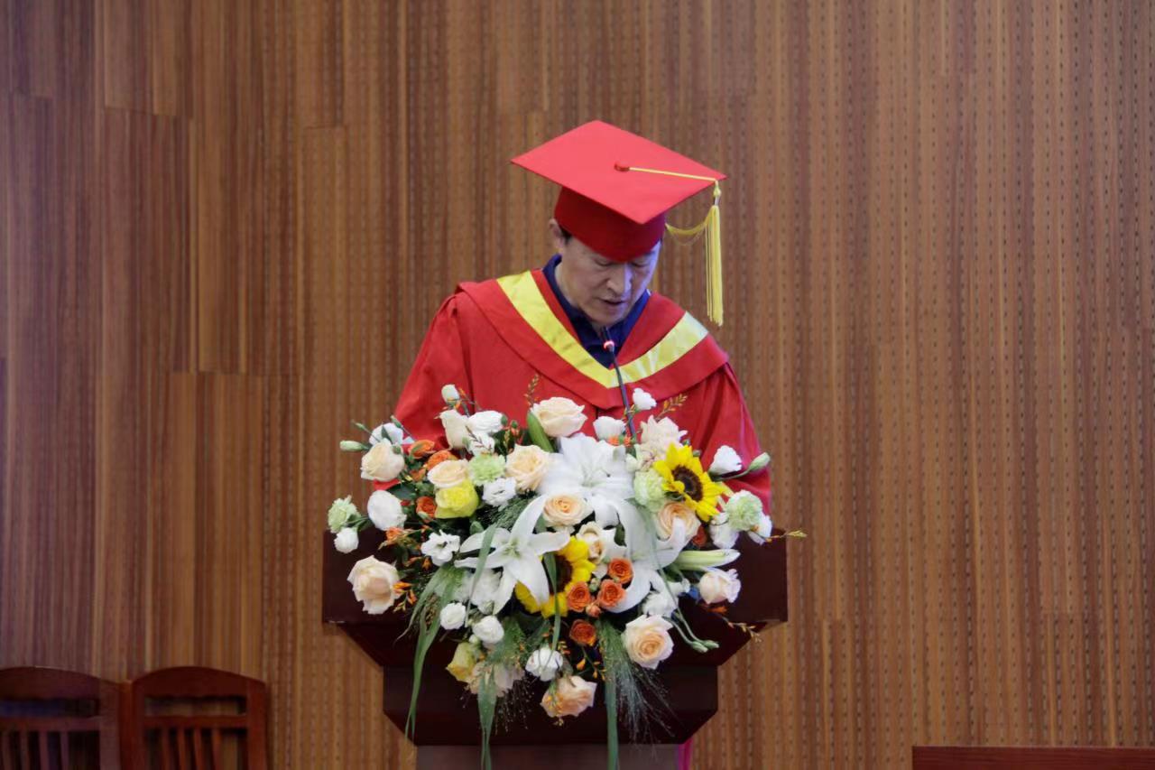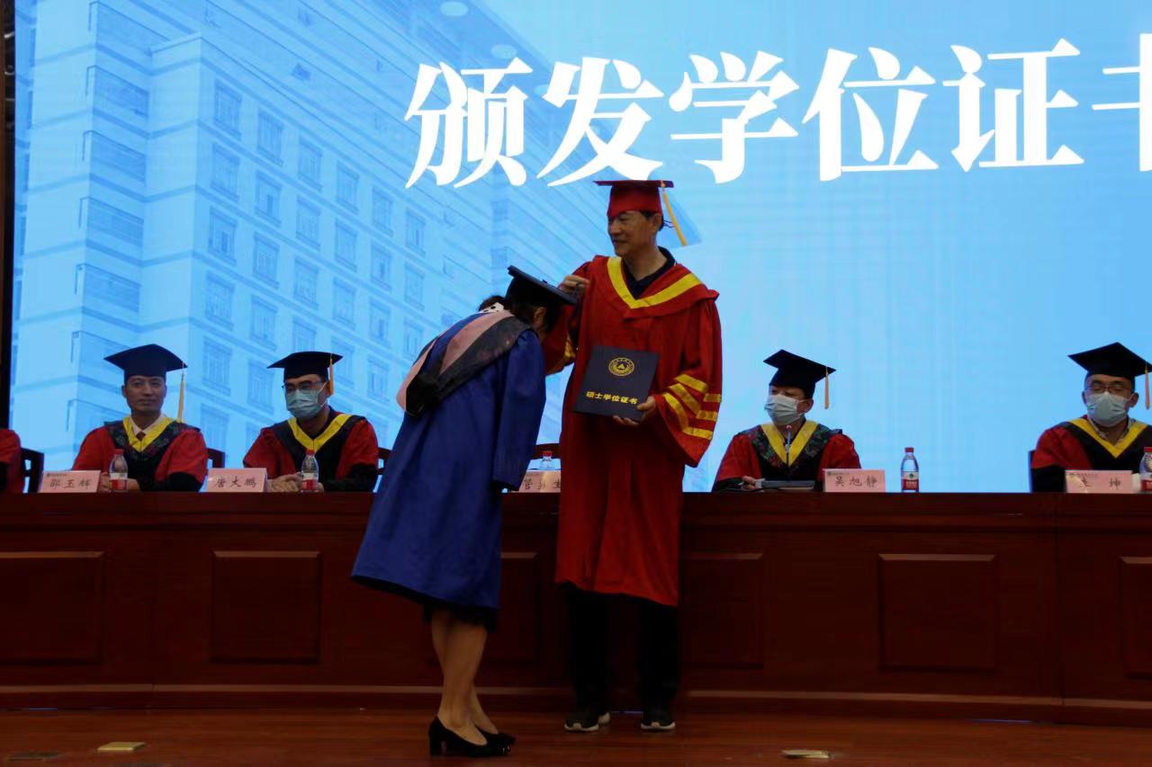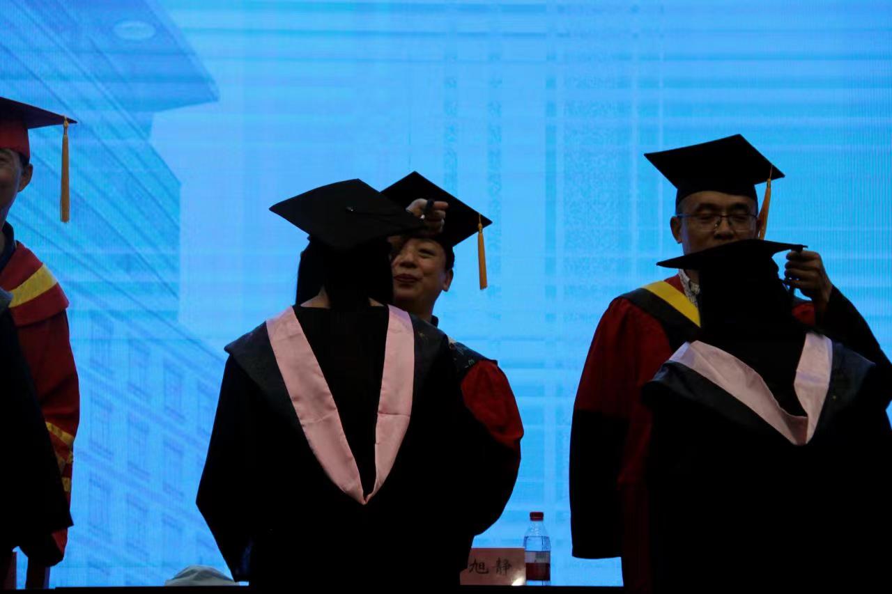 副院长唐大鹏宣读获得硕士学位和学士学位学生名单。接着,学院学位评定委员会成员为毕业生一一援正流苏、颁发学士学位证书,并合影留念。