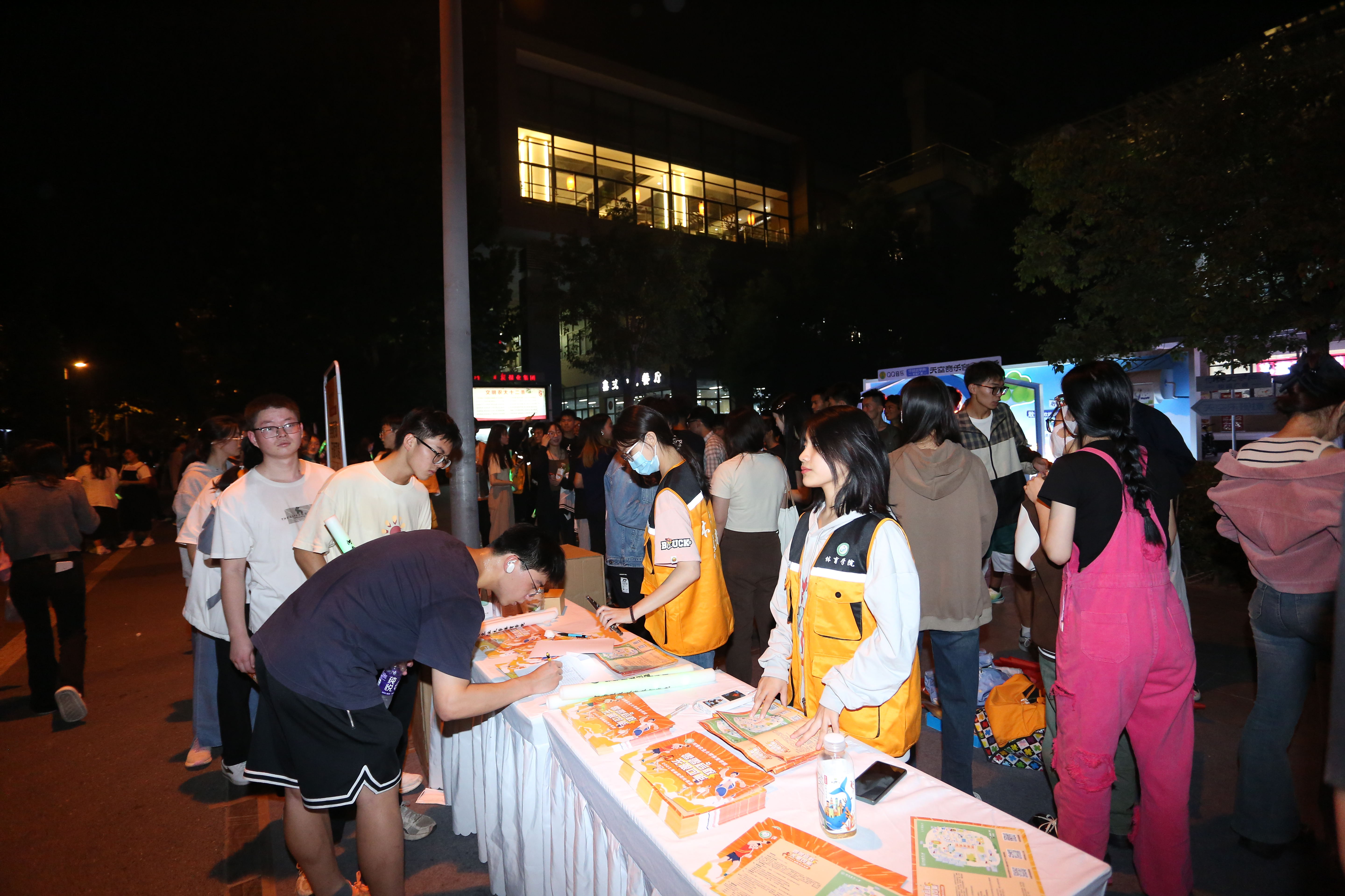 随着一声令下,师生们化身荧光精灵,汇成一条耀眼的银河,点亮整个校园。沿途光影舞动,笑语欢声,一座座雄伟的建筑在师生的奔跑中精彩呈现。篮球场、大礼堂、图书馆、第二工程楼、凯旋门、创新大厦前六个打卡点分别设置了体育知识问答、趣味游戏环节等,健全体魄与富含趣味性的游戏使师生们的身心得到放松,感受到了运动的快乐。