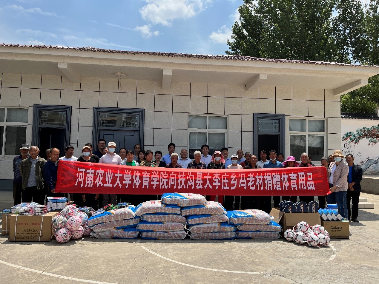 最后,游舸代表学校向冯老村捐赠了玉米良种、体育用品等。