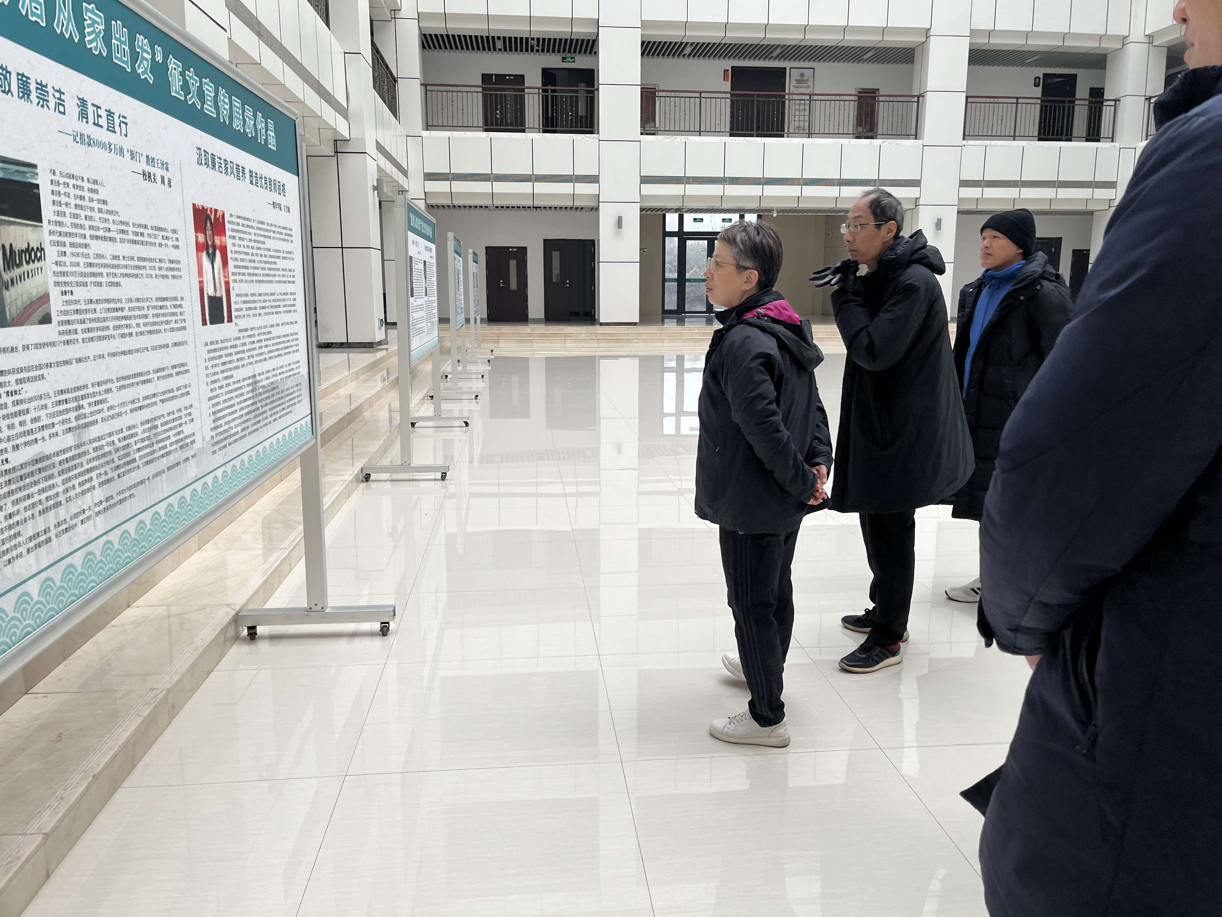 在家班子成员及中层干部一行集体到综合楼大厅参观“廉洁从家出发”主题展。