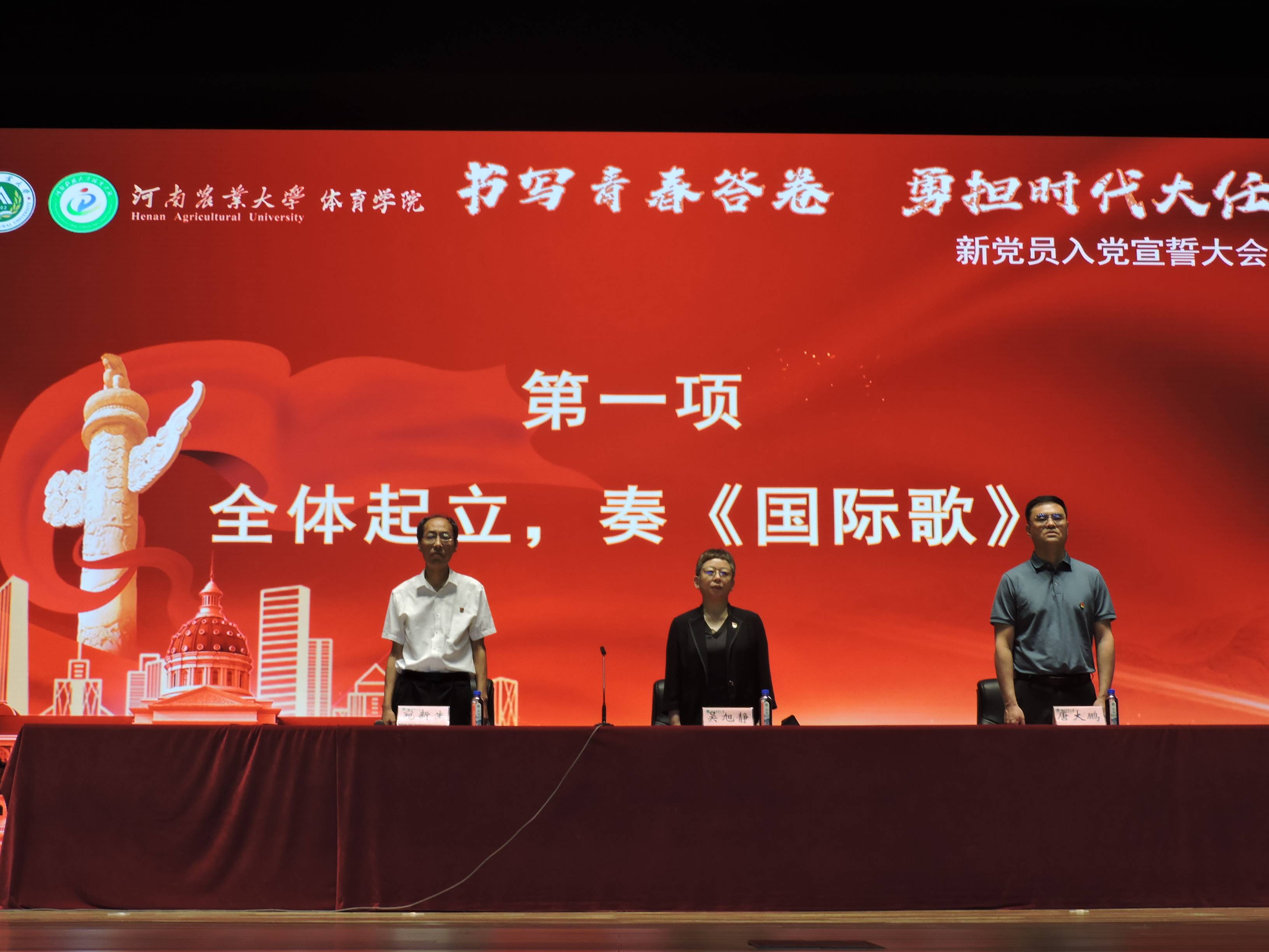 大会分为两个阶段进行,第一阶段为新党员入党宣誓大会,大会在雄壮的《国际歌》中拉开帷幕;宛新生宣读了参加此次宣誓活动的45名同学名单,院党委组织员黄妍带领新党员进行了宣誓活动;全省大学生党员标兵、第四届校最美大学生2020级社会体育指导与管理专业四班孙雨结合自身的成长和奋斗历程进行了发言。