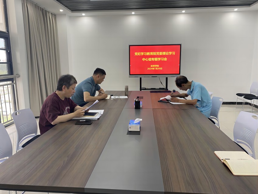 7月30日下午,院党委在英林讲堂四楼学院党建工作室召开理论学习中心组学习会,专题学习党的二十届三中全会精神。院班子成员出席会议。院党委书记吴旭静主持会议。