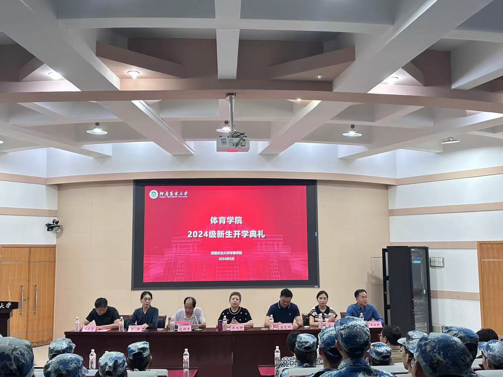 院长唐大鹏致辞,介绍了学院的基本情况、教科研水平、师资队伍以及成绩荣誉等;高年级学生代表2022级舞蹈表演专业1班郑子恒、新生代表2024级社会体育指导与管理专业3班刘梦涵和教师代表体育艺术系党支部书记(主任)王献斐依次发言。
