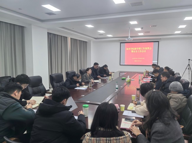 于2月14日在学院会议室召开了新学期工作部署会暨安全工作会议。班子全体成员、全体中层和专兼职辅导员参加会议,会议由院党委书记吴旭静主持。