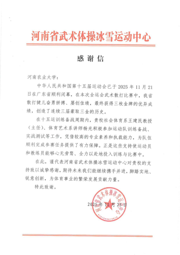 师生继续发扬专业优势,积极参与社会服务,为学校赢得更高荣誉,为河南体育事业高质量发展持续贡献智慧与力量!