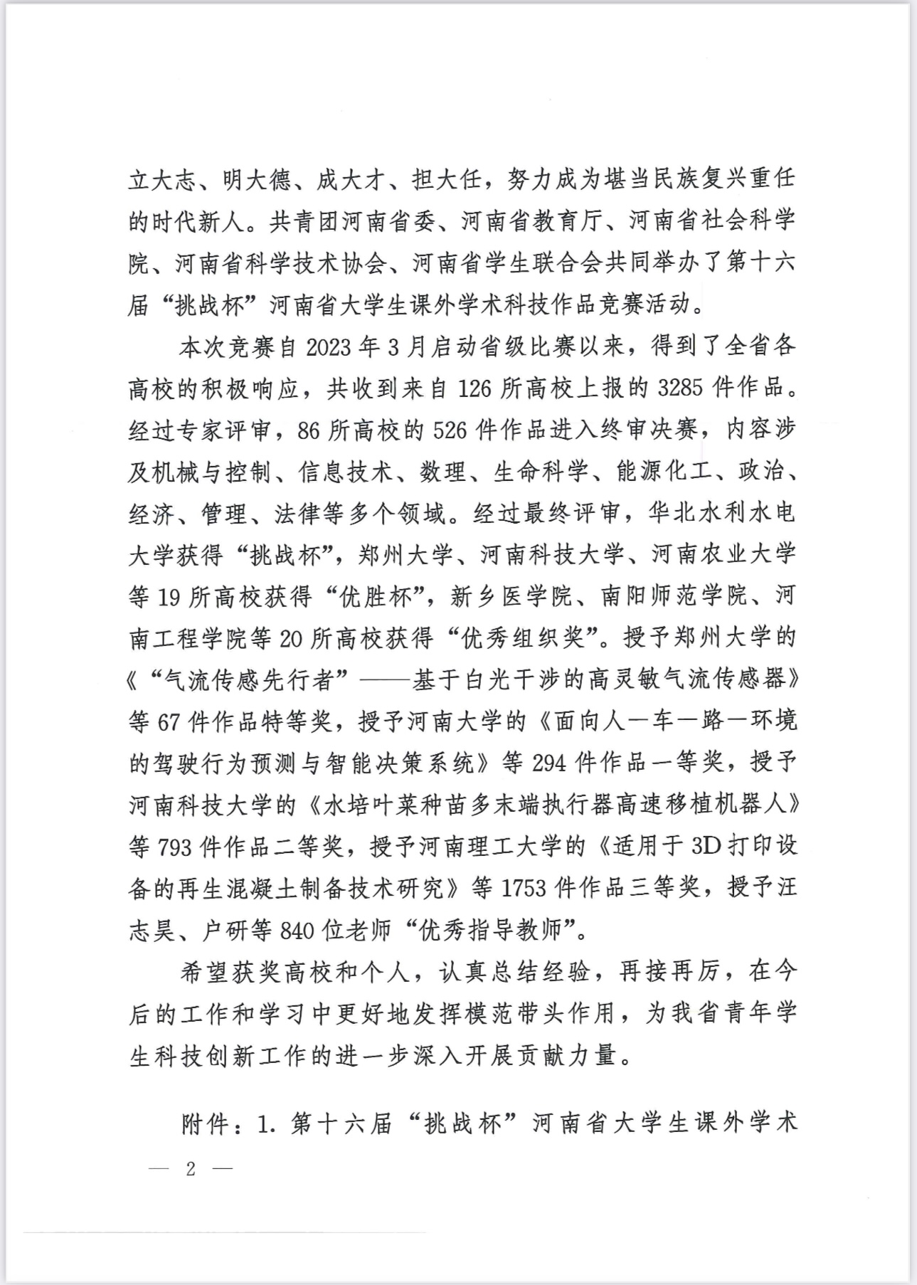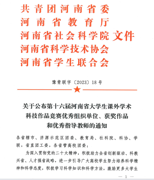 近日,由共⻘团河南省委、河南省教育厅、河南省社会科学院、河南省科学技术协会、河南省学生联合会共同主办的第十六届“挑战杯” 河南省大学生课外学术科技作品竞赛顺利结束,笔趣阁 学生作品获省赛二等奖。
